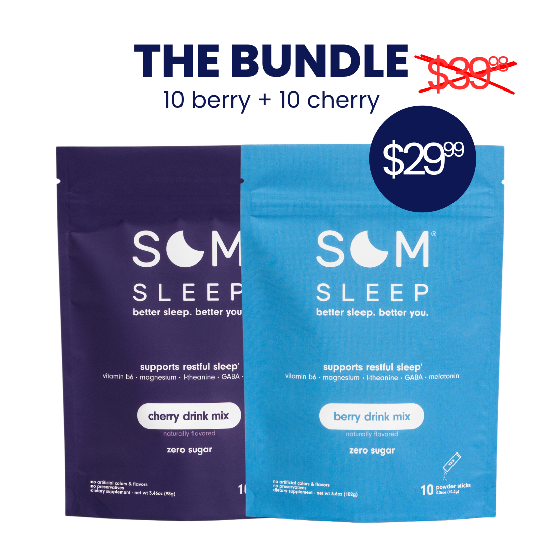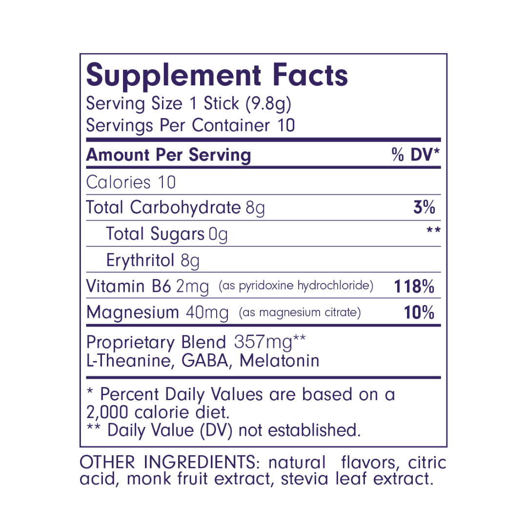 We spent over 15 months developing Som Sleep with a scientist to perfect its taste and efficacy. Using science-backed ingredients like magnesium, vitamin b6, L-theanine, GABA, and melatonin (3mg), we addressed the shortcomings of other sleep products—habit-forming, grogginess, bad taste, and ineffectiveness.